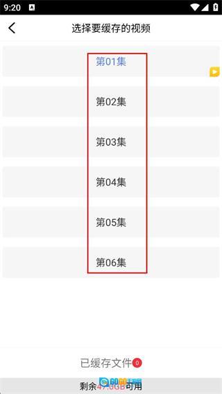 4、进入视频缓存页面后,选定想要缓存的集数,就能启动对应视频的缓存流程。