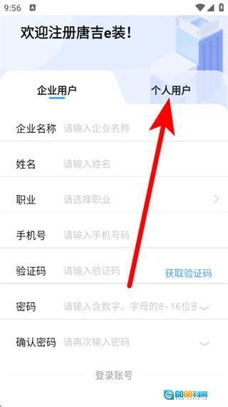 2、进入注册页面后,点击“个人用户”选项,即可切换至个人用户注册界面。