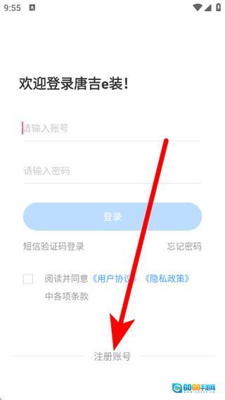 1、在唐吉e装登录页面,点击注册账号选项,即可进入注册页面。