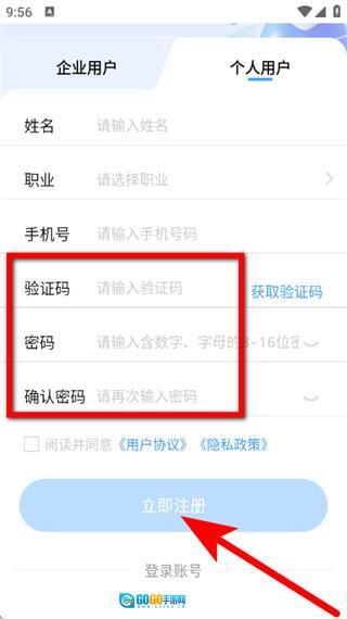4、填写验证码,设置好密码,勾选相关协议后,点击“立即注册”按钮,即可完成账号注册流程。