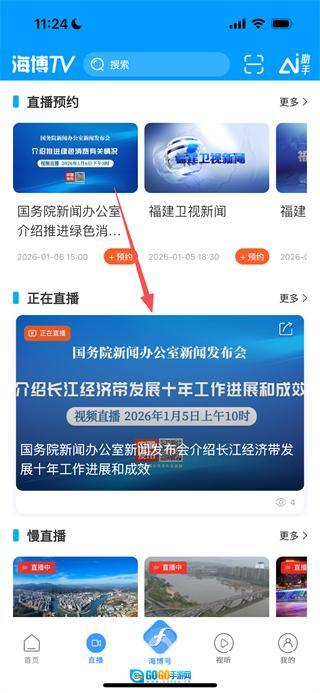 在直播页面中,点击当前正在进行直播的目标内容,即可进入该场直播的播放界面。