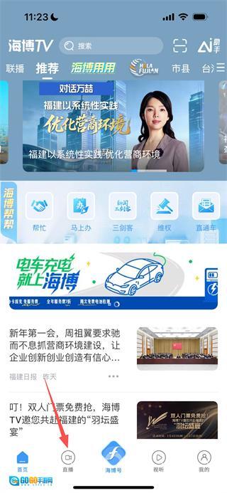 进入首页后,点击底部的直播选项,即可进入直播页面。