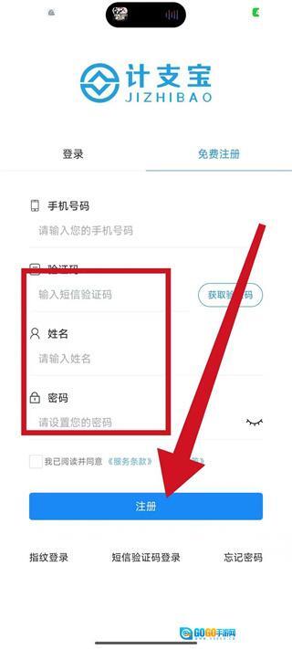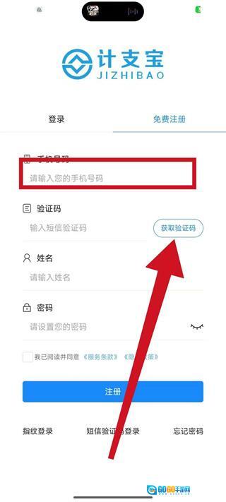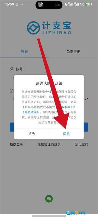 1、打开计支宝,弹出的弹窗后,点击同意,进入登录注册页面。