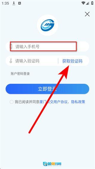 3、在登录页面填写请输入手机号,点击获取验证码。
