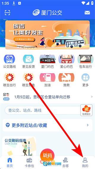 1、打开厦门公交应用,点击底部导航栏中的“我的”选项,进入个人中心页面。