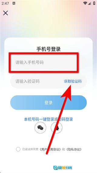 4、在验证码输入框中完成填写后,勾选同意相关协议,随后点击登录按钮,即可完成登录流程。