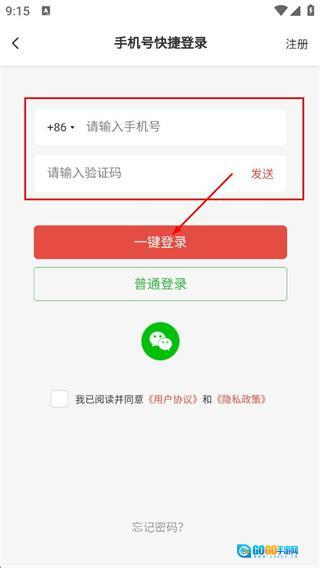3、在快捷登录页面,填写手机号和验证码,点击一键登录完成登录操作。