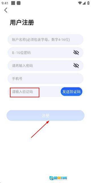 3、在账号注册页面填写验证码后,点击注册按钮即可完成注册流程。