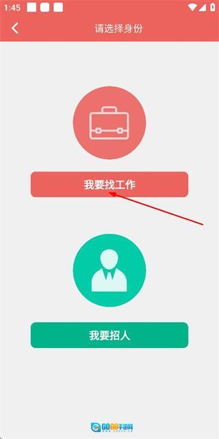 1、登录后在选择身份页面点击我要找工作选项,进入职位列表页面。