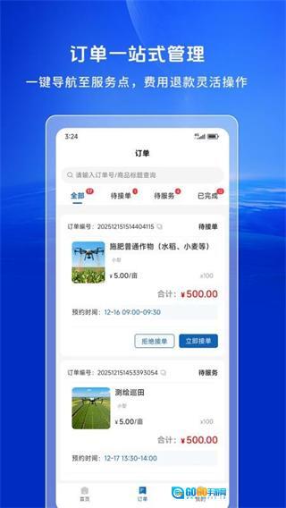 覆盖农业植保电力巡检等多场景,订单遍布全国,智能推送附近匹配订单,彻底解决飞手找单难接单难的核心痛点,旺季可满足满负荷作业需求。