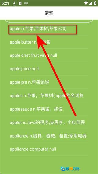 3.在搜索结果列表里,找到目标单词条目,点击该条目进入单词详情页面。