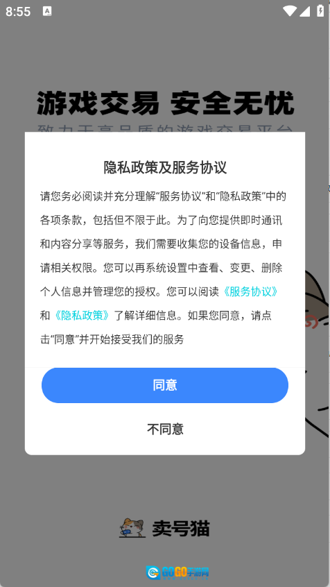 1、首先在本站卖号猫平台,查看并同意隐私政策与用户协议。