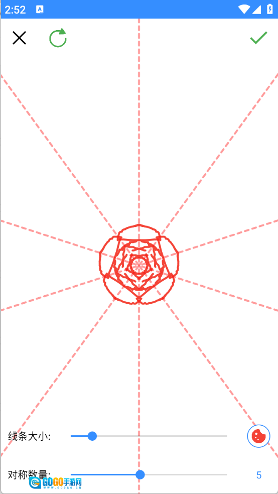 如果想要进行对称绘画,可以设置线条大小、对称数量和画笔颜色来开展创作。
