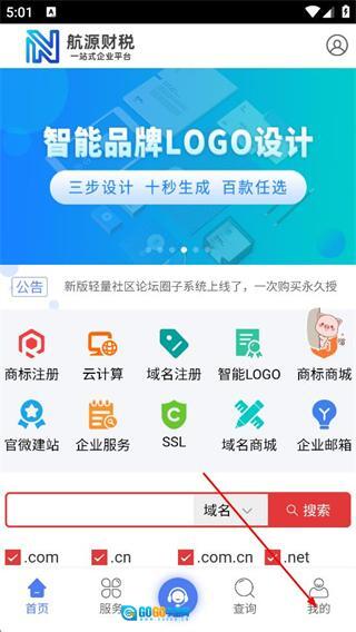 2、随后我们可以在航源财税首页,点击底部的我的选项,进入登录页面。