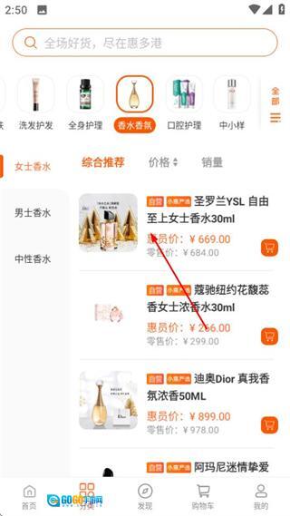 在美妆页面中,点击香水香氛分类选项,就能进入到对应的商品列表页面。