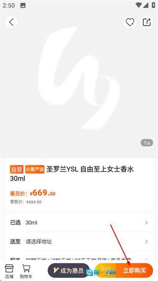 4、在商品详情页,点击“立即购买”按钮,就能走完该商品的购买流程。