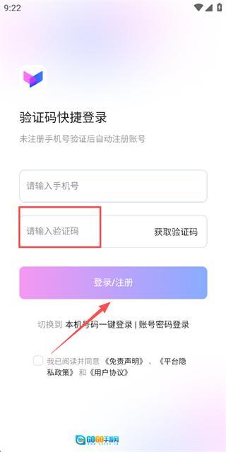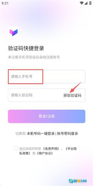 2、在登录页面填写手机号,勾选协议后,点击获取验证码。