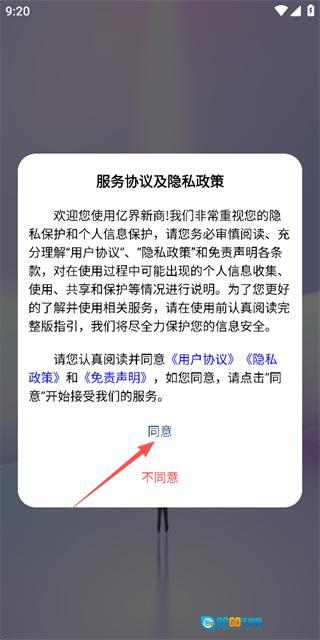 1、在用户协议隐私政策弹窗中点击同意按钮,进入登录页面。