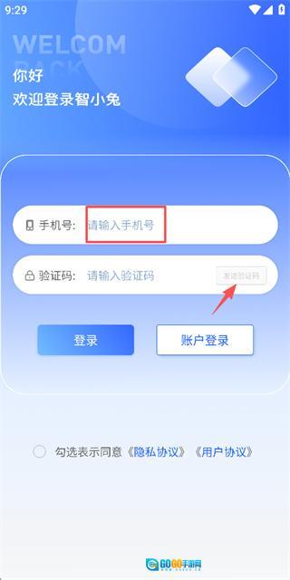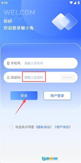2、在登录界面输入手机号,勾选相关协议后,点击“获取验证码”按钮。