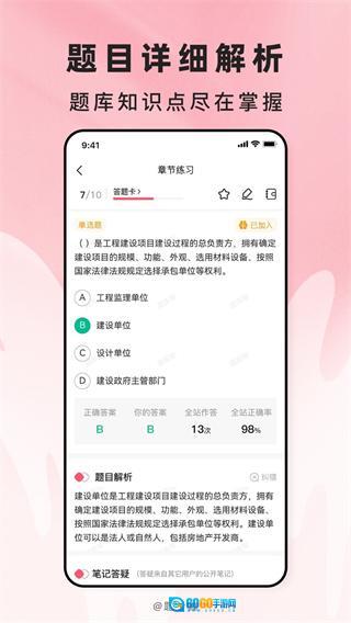 完全适配移动端学习场景,支持离线做题、收藏题目、学习进度同步等功能,方便考生充分利用通勤、午休等碎片时间进行高效学习。