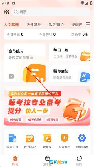 进入题考拉后,点击“章节练习”选项,即可进入章节练习分类页面。