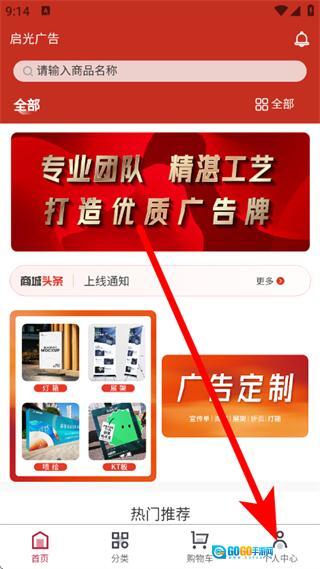 1、在启光广告首页,点击底部个人中心,进入个人页面。