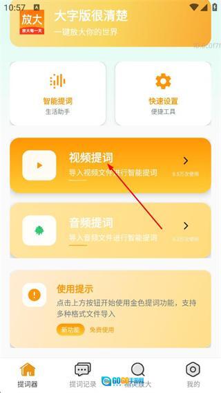 2、随后我们在主界面,点击视频提词的选项,进入选择视频的页面。