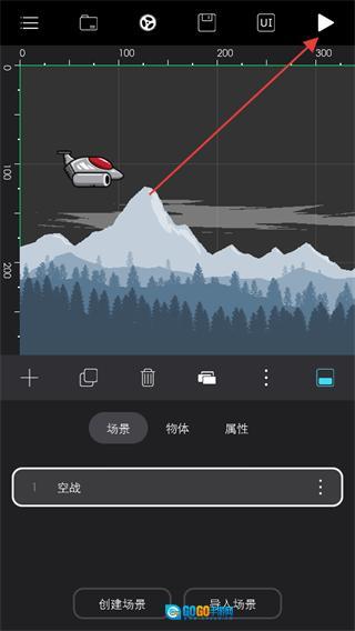 3、进入演示工程页面,点击右上角的三角符号开始播放。