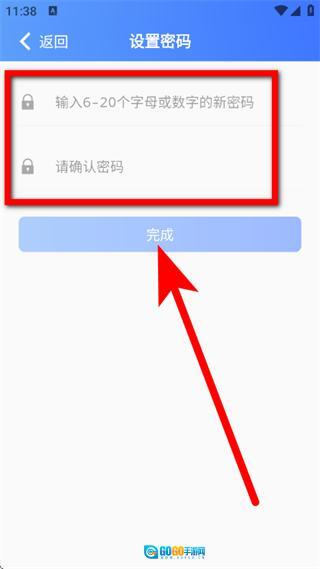 4、进入设置密码页面后,设置好密码并点击完成按钮,即可完成账号注册流程。
