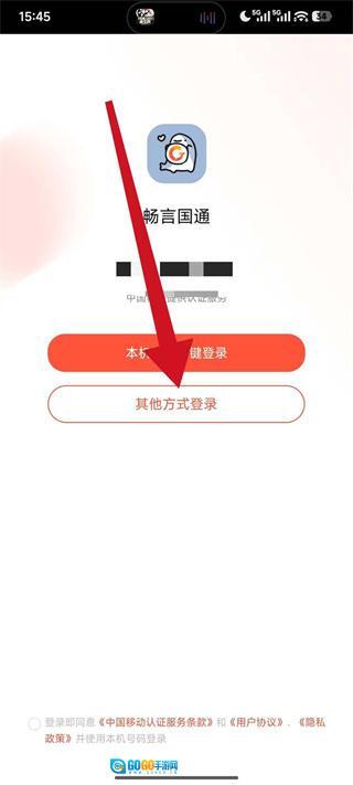 2、在登录选择页面中,点击其他方式登录,进入账号登录页面。