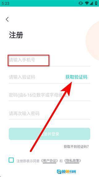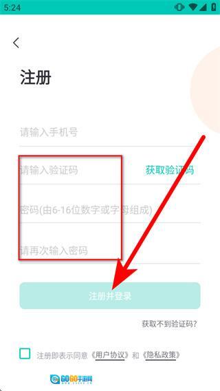4、将收到的短信验证码填入验证码框,填写密码,勾选协议后,点击注册并登录,即可完成账号注册。