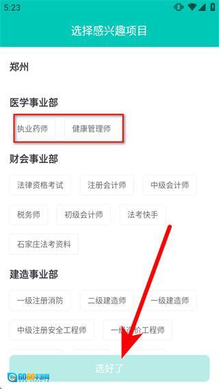 2、在该页面勾选自己感兴趣的项目,选择完成后点击底部的选好了,进入账号注册页面。