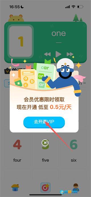 2、在单词学习页面,点击目标单词,会弹出会员开通弹窗。