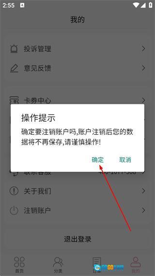 3、最后我们在操作提示弹窗中,点击确定按钮,完成账户注销操作。