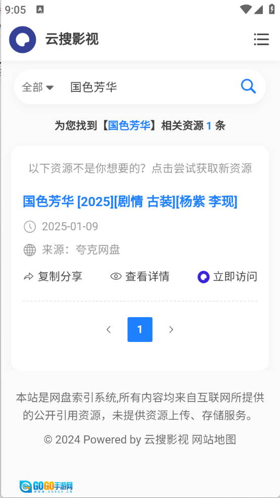 云搜影视是一个汇聚各类免费资源的平台,涵盖了丰富多样的内容。无论是影视剧、电影还是综艺,这里都能找到。平台上所有影视资源均免费提供,并且持续更新新剧集,当下最新、最热门的作品也都收录其中。只需输入关键词,就能快速定位到你想看的影片。