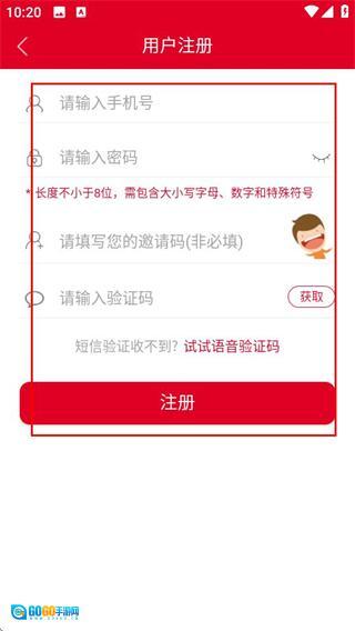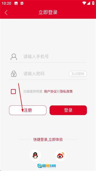 3、在登录页面,点击注册按钮,可进入用户注册页面。