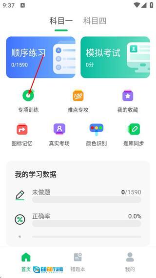 1、进入首页后,点击专项训练选项,可进入科目一专项练习页面。