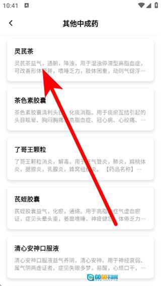 4、在其他中成药页面,点击要了解的中成药,进入详情页面。