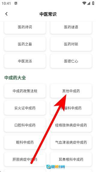3、在中医常识页面,点击其他中成药,进入对应列表页面。