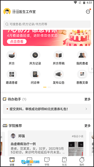 2. 作为中医医师,可在该软件注册账号,以便在线解答患者的问题。