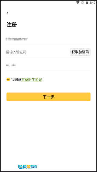 3. 填写手机号并输入验证码,设置好密码后点击下一步按钮。