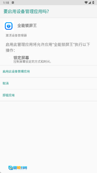 2、点击开启一键锁屏功能,随后启用该设备管理应用,即可随时锁定屏幕;