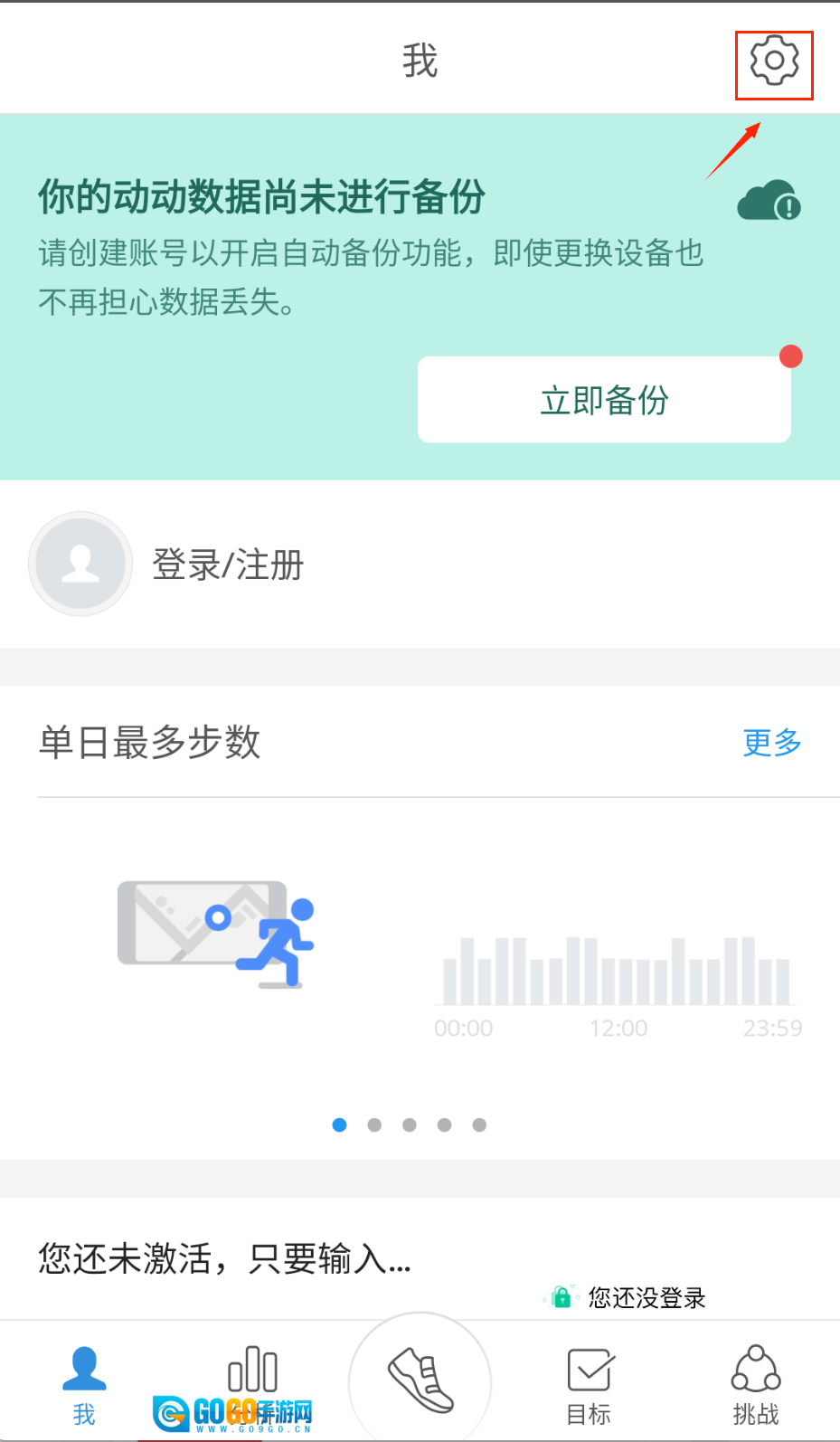1、首先进入动动计步器,在我的界面直接点击右上角的设置图标。