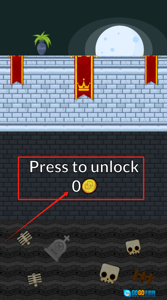 1、点击红框内的“Press to unlock”解锁新内容,该操作需要消耗金币,但目前金币数量为0,建议先积累金币。