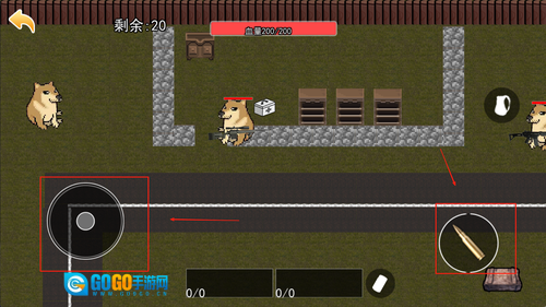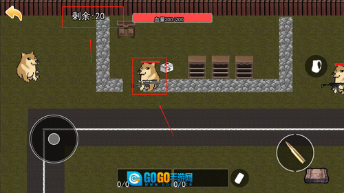 2、操作界面设计清晰明了,屏幕左侧的按钮用于控制移动方向,右侧则分布着射击与技能相关的按钮,屏幕上方还会实时显示当前的血量和弹药剩余情况,各项信息都能让人一目了然。
