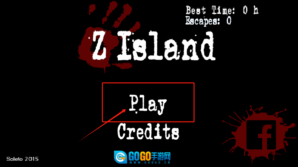 1、点击红框内的Play按钮开始游戏,Credits可查看制作名单,当前记录显示最佳时间为0小时。