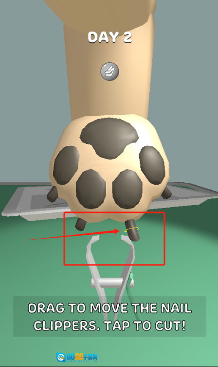 3、第二天的任务是,把指甲剪拖过去给猫咪剪指甲,点击屏幕就能完成修剪啦。