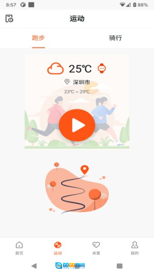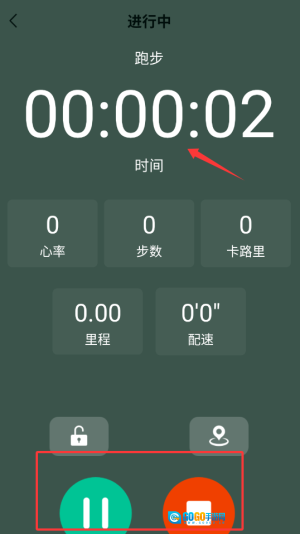 2、选定目标运动类型后,点击界面中间的计时器图标,即可开启运动记录功能。