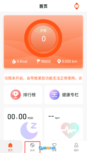 1、打开HealthWear应用,进入首页后点击“运动”板块,该板块包含多种健身计时相关功能。