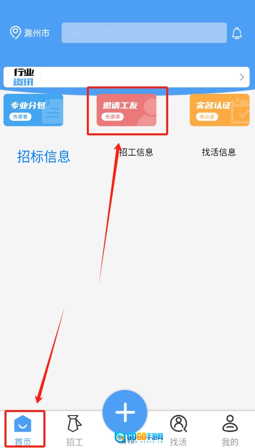 3、登录成功后返回首页,找到“邀请工友”按钮,点击即可分享给身边的工友。